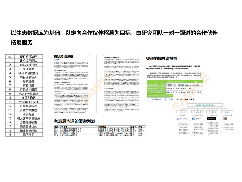 圍繞生態(tài)建設(shè)實(shí)務(wù)為客戶提供的專項(xiàng)服務(wù),包含生態(tài)機(jī)會(huì)定向挖掘基礎(chǔ)服務(wù)、生態(tài)機(jī)會(huì)定向挖掘標(biāo)準(zhǔn)服務(wù)、渠道會(huì)議主題內(nèi)容輸出、小型生態(tài)研討會(huì)組織及內(nèi)容輸出等。