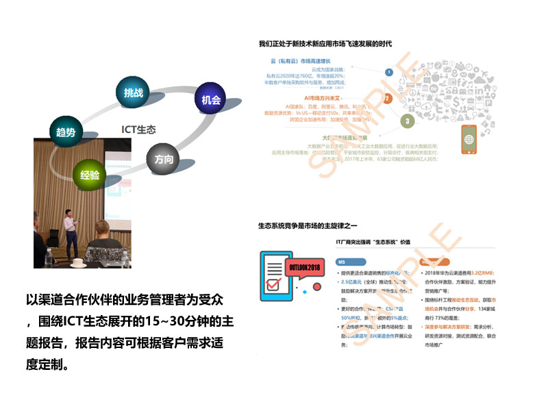 G-ECO持續(xù)關(guān)注著生態(tài)玩家群體的業(yè)務(wù)生命周期、新應(yīng)用業(yè)務(wù)現(xiàn)狀、基本ICT業(yè)態(tài)、重點(diǎn)ICT產(chǎn)品、重點(diǎn)合作品牌、業(yè)績(jī)周期變化、業(yè)務(wù)結(jié)構(gòu)變化、業(yè)務(wù)驅(qū)動(dòng)力變化、生態(tài)系統(tǒng)評(píng)價(jià)、生態(tài)合作訴求等信息,并藉此建立對(duì)ICT市場(chǎng)的整體認(rèn)知。據(jù)此,我們?yōu)榭蛻籼峁┤缦路?wù):